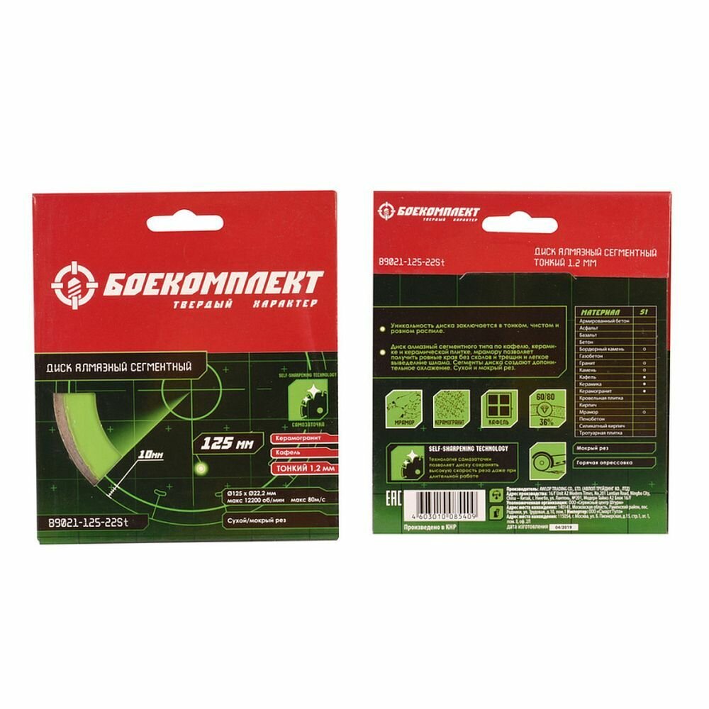 Диск алмазный боекомплект B9021-125-22St информация: