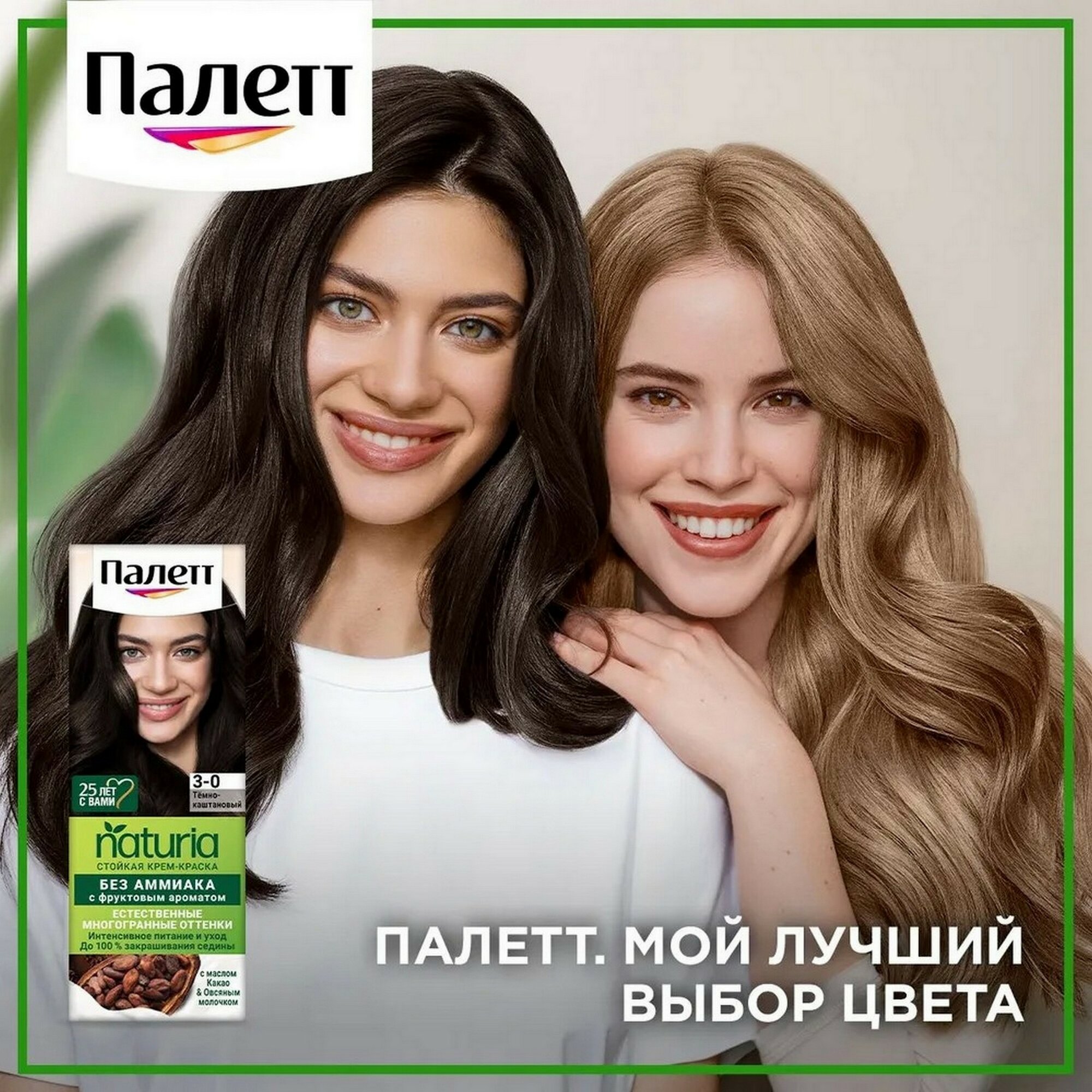 Палетт Naturia Стойкая крем-краска для волос, 3-0 Темно-каштановый, 110 мл - 2 шт информация: