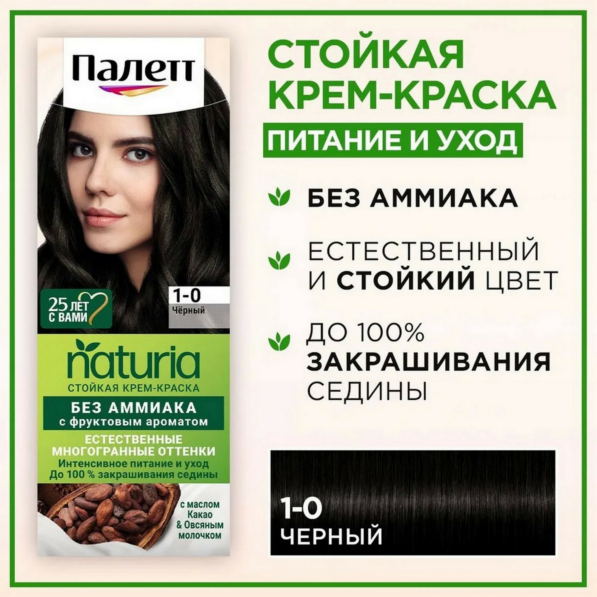 Палетт Naturia Стойкая крем-краска для волос, 1-0 Черный, 110 мл - 3 шт информация: