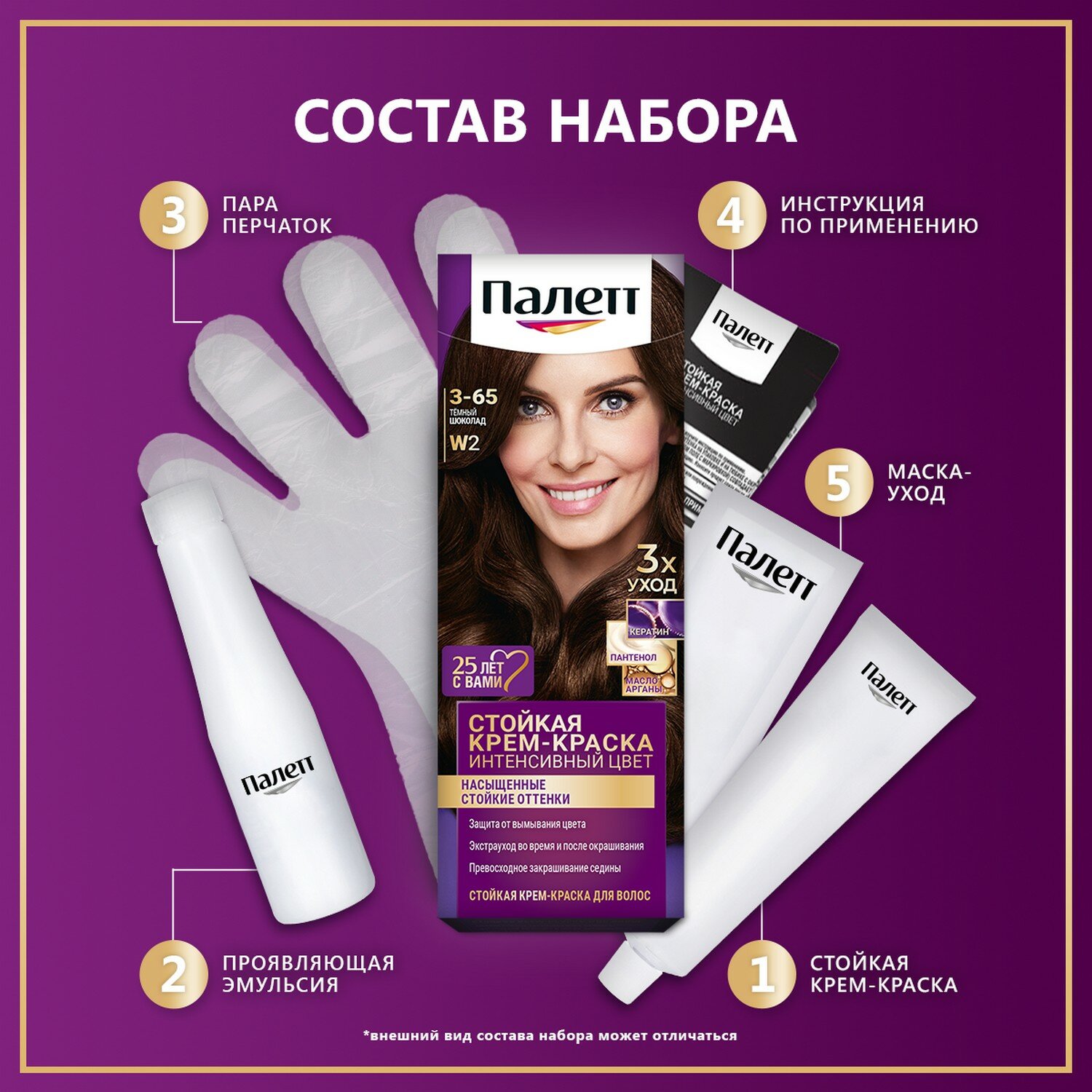 Палетт Стойкая крем-краска Интенсивный цвет, W2 3-65 Темный шоколад, 110 мл - 3 шт информация: