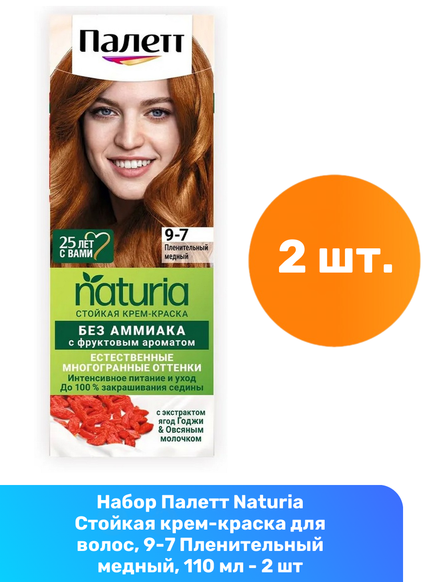 Палетт Naturia Стойкая крем-краска для волос, 9-7 Пленительный медный, 110 мл - 2 шт 616 ₽