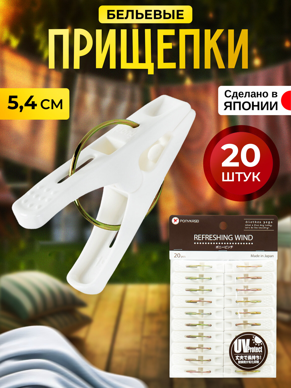 Прищепки для белья набор 20 шт 5,4*1,1*3,1 см Pony Kasei информация: