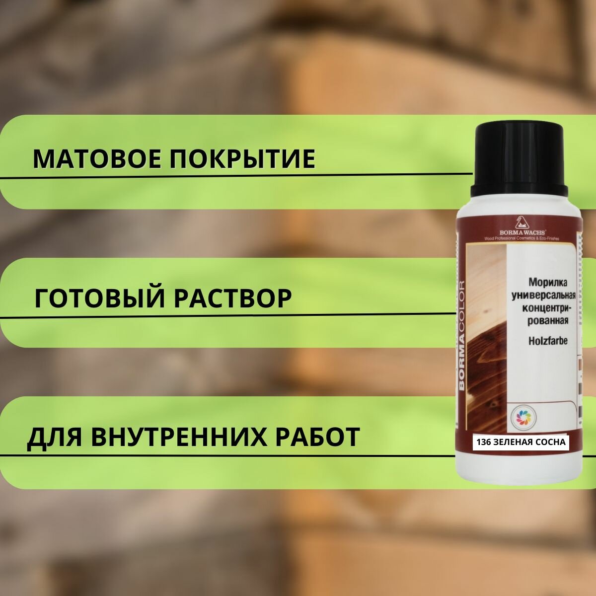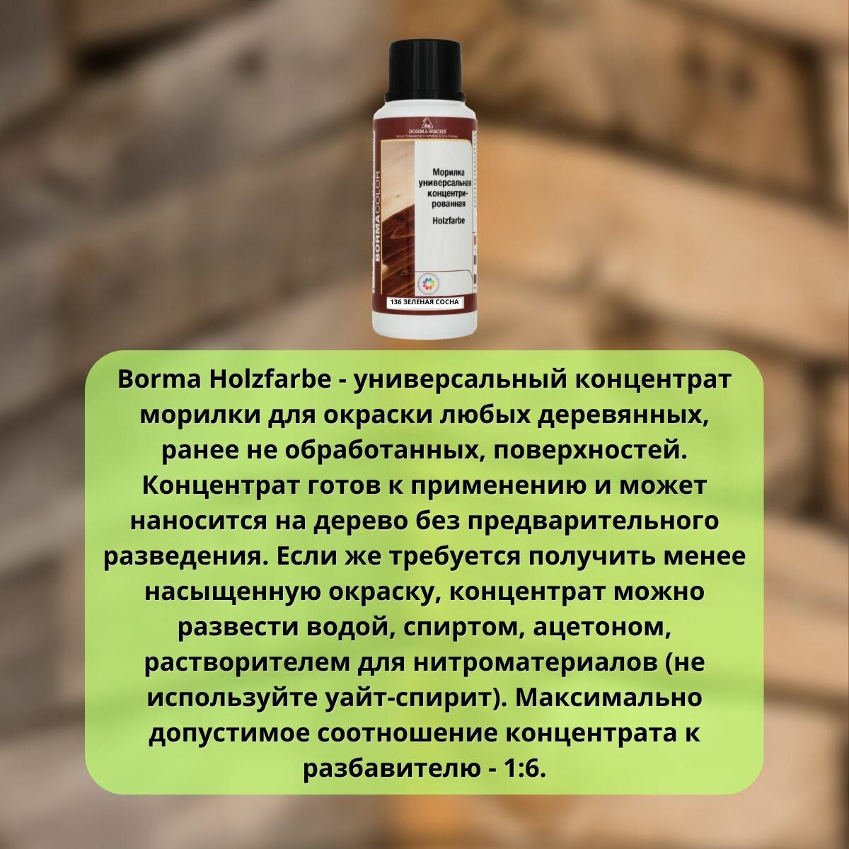 Морилка на основе растворителя BORMA HOLZFARBE 250мл Зеленая сосна 136 3000VP информация: