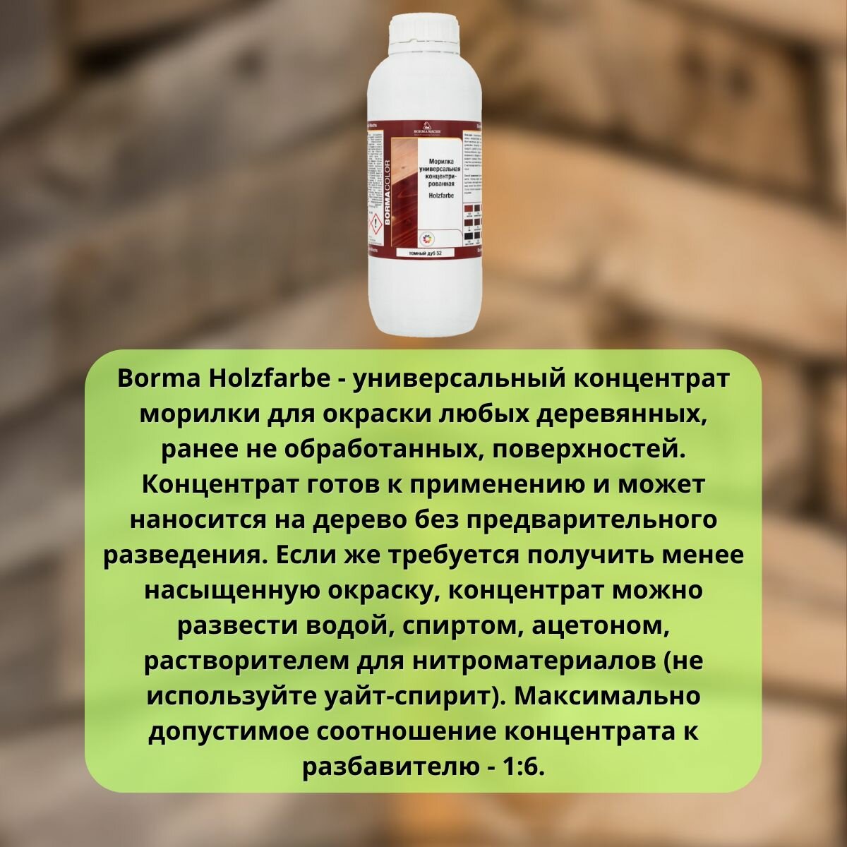 Морилка на основе растворителя Borma holzfarbe 1л Темный дуб 52 3100ROV информация: