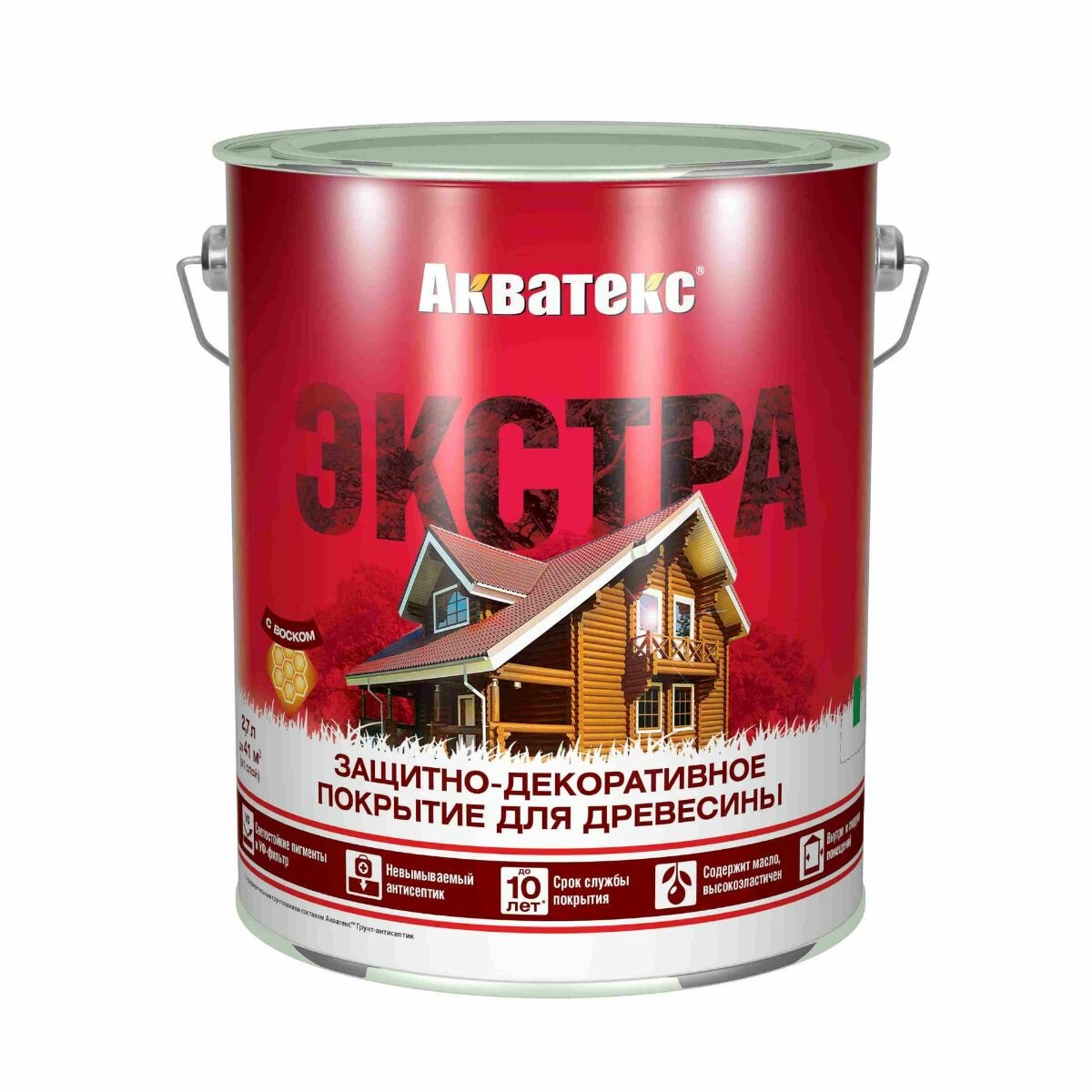 Защитно-декоративное покрытие для дерева акватекс экстра алкидное, полуглянцевое, рябина 9л