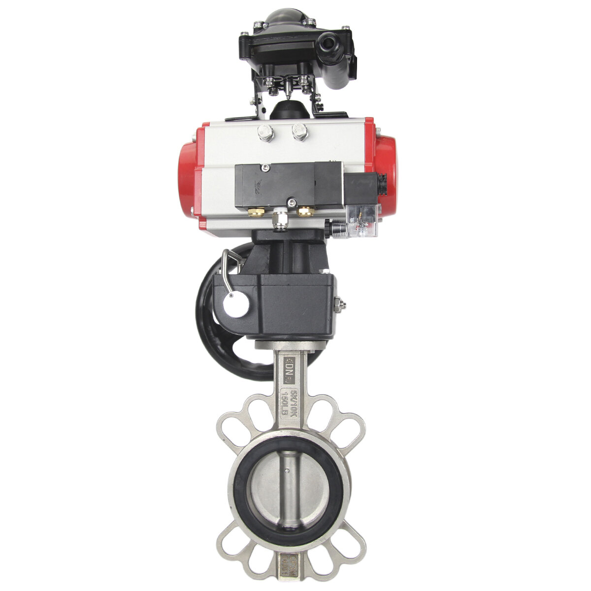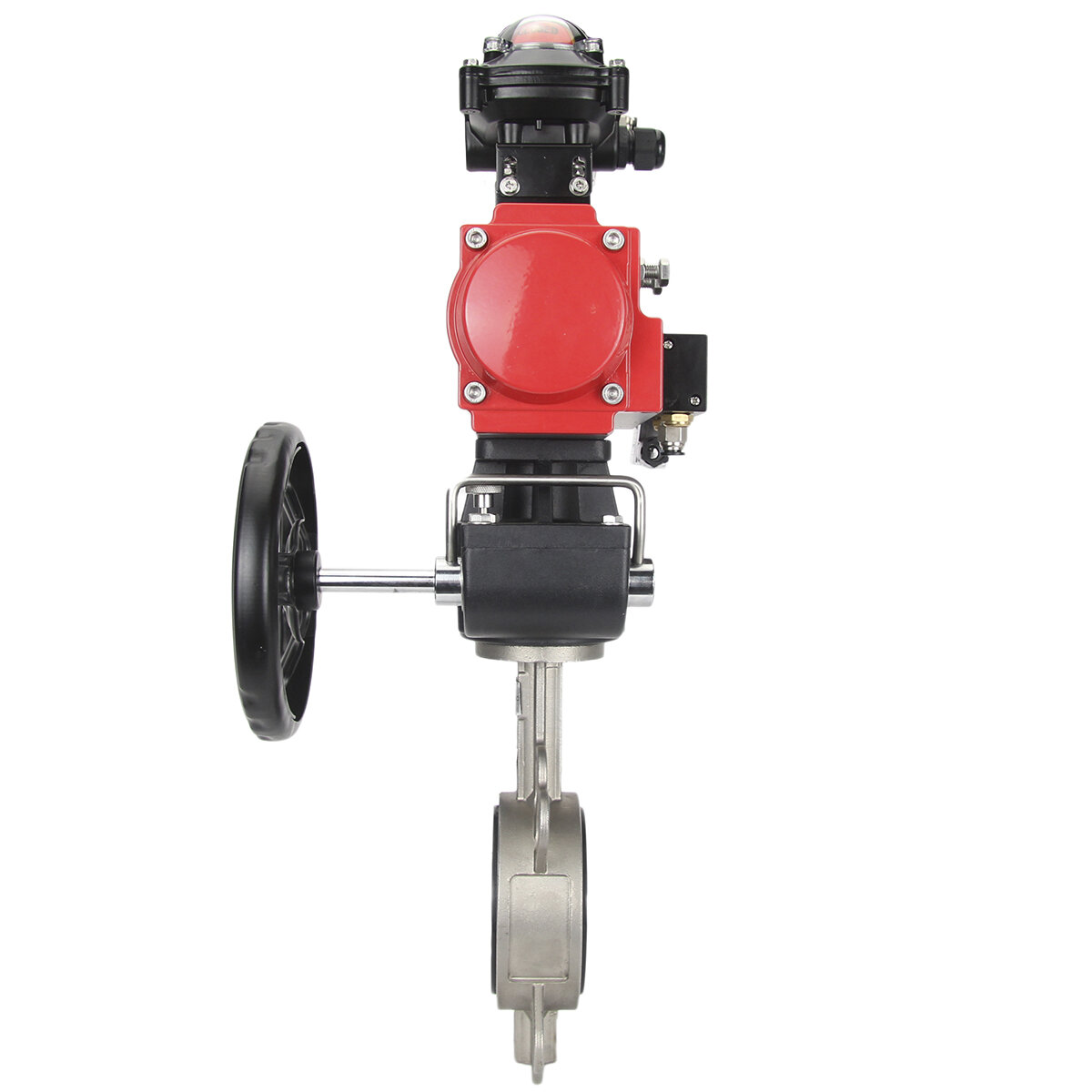 Затвор DN.ru 316L-316L-EPDM Ду80 Ру16, корпус - нержавеющая сталь 316L, диск - нержавеющая сталь 316L, уплотнение - EPDM, с пневмоприводом DN.ru DA-083, с пневмораспределителем 4M310-08 220V, с блоком концевых выключателей APL-210N и ручным дублером HDM-2 информация: