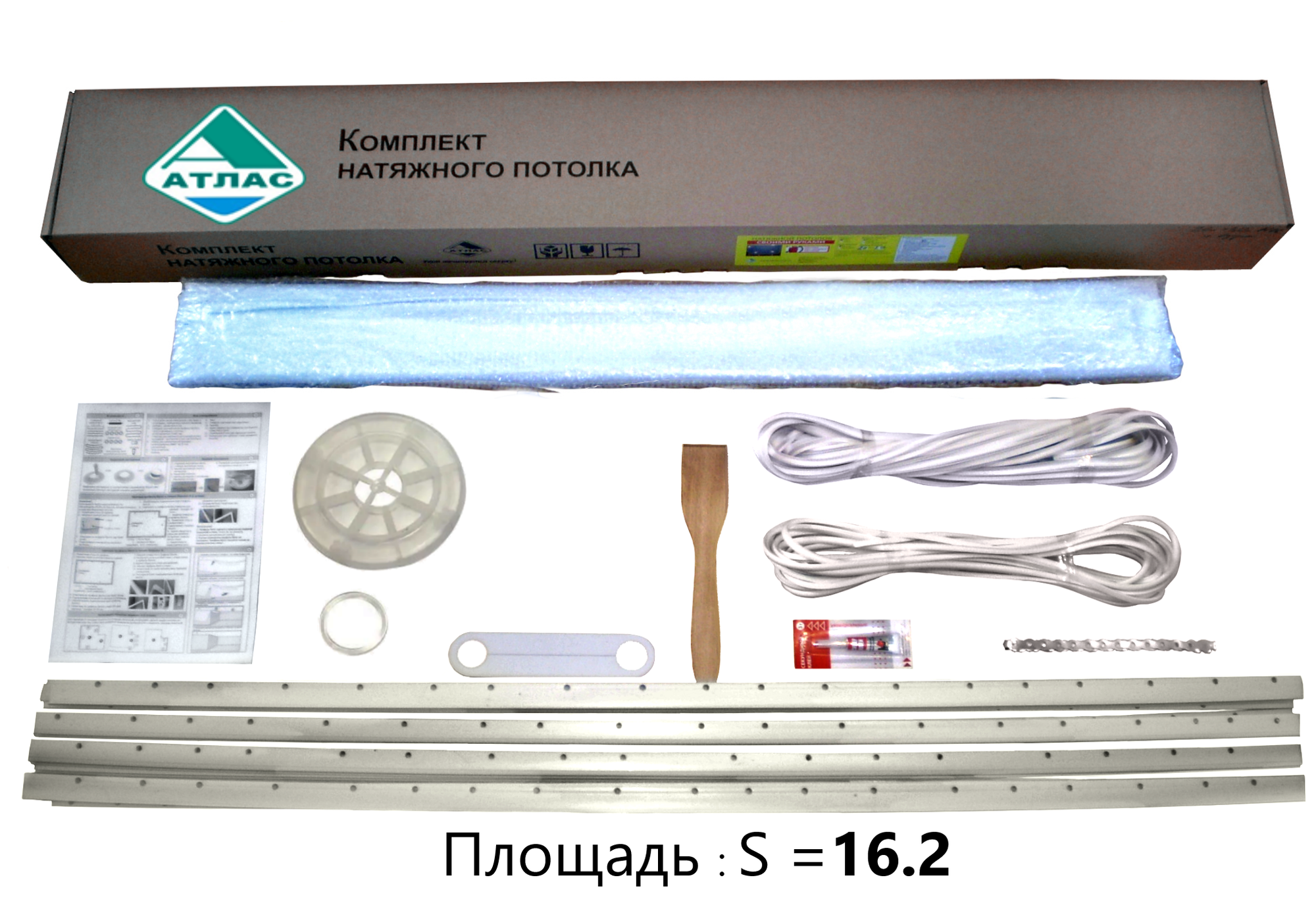 Комплект натяжного потолка Атлас № 12 для комнаты (3,1 м * 3,8 м) - полотно в комплекте ( 3,2 м * 4,0 м )