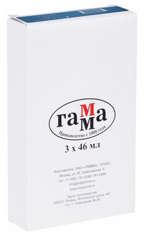 Набор из 3 шт. - Краска масляная художественная Гамма "Студия", 46 мл, кобальт синий светлый (имит.) информация: