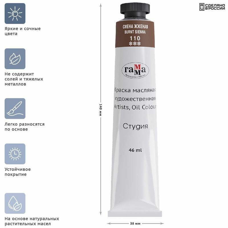 Краска масляная художественная Гамма "Студия", туба 46мл, сиена жженая (0.00.А046.110), 3шт. 732 ₽