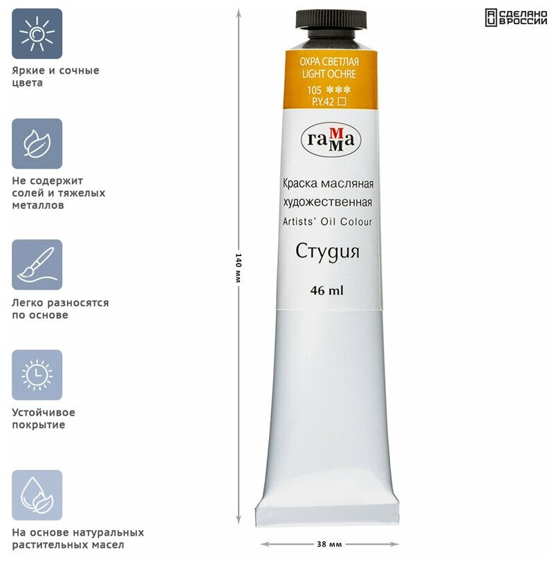 Отзывы на Краска масляная художественная 3 шт по 46 мл охра светлая Гамма "Студия", 1 упаковка