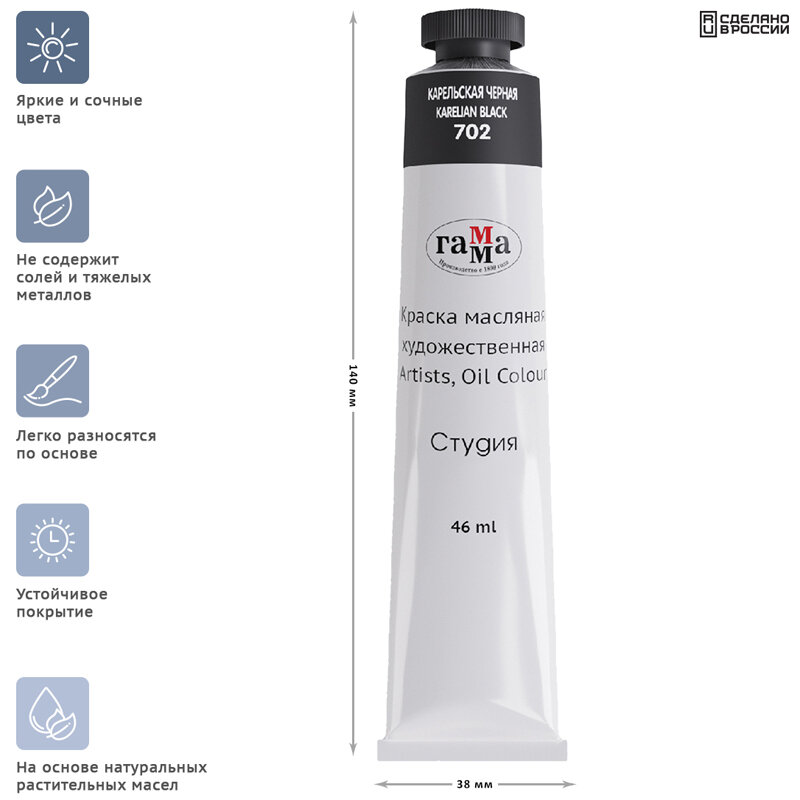 Краска масляная художественная Гамма "Студия", туба 46мл, карельская черная, 46мл