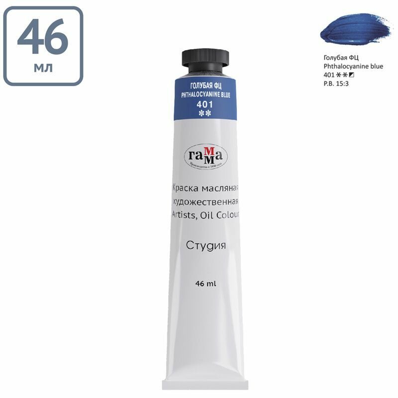 1 шт - Краска масляная художественная Гамма "Студия", 46мл, туба, голубая фц информация: