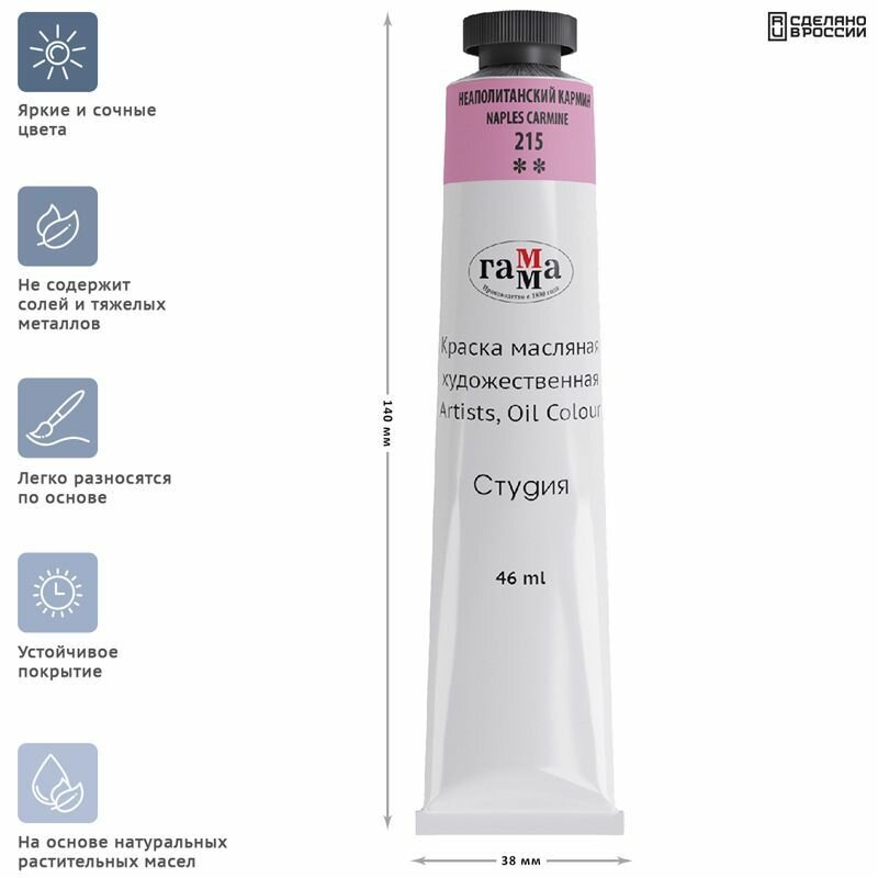 Отзывы на 6 шт - Краска масляная художественная Гамма "Студия", 46мл, туба, неаполитанский кармин