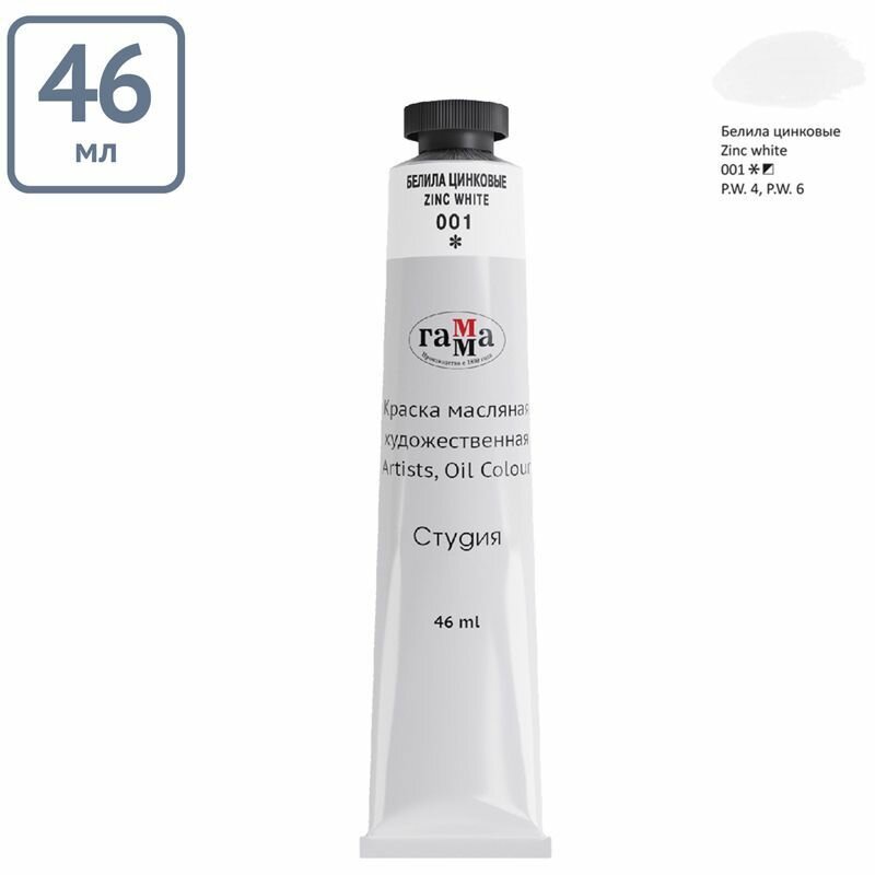 6 шт - Краска масляная художественная Гамма "Студия", 46мл, туба, белила цинковые информация:
