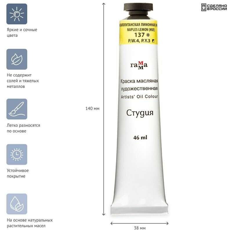 Краска Масляная Художественная гамма "Студия", 46мл. Неаполитанская Лимонная (имит.) (3 шт)