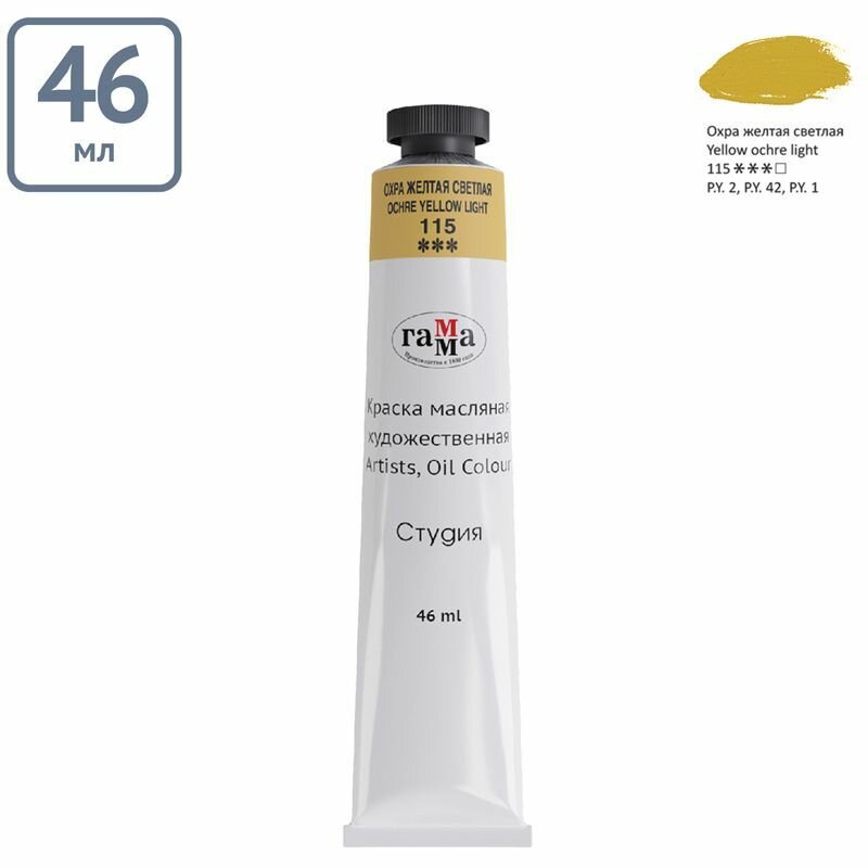 Краска масляная художественная Гамма "Студия", 46мл, туба, охра желтая светлая