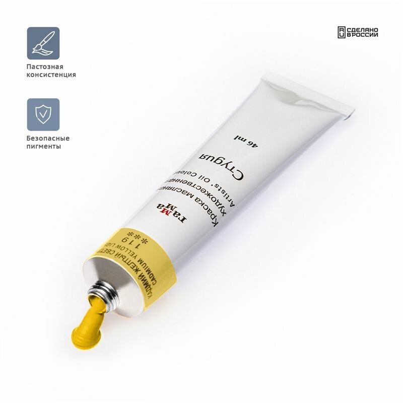 10 цен на 6 шт - Краска масляная художественная Гамма "Студия", 46мл, туба, кадмий желтый светлый (имит.)