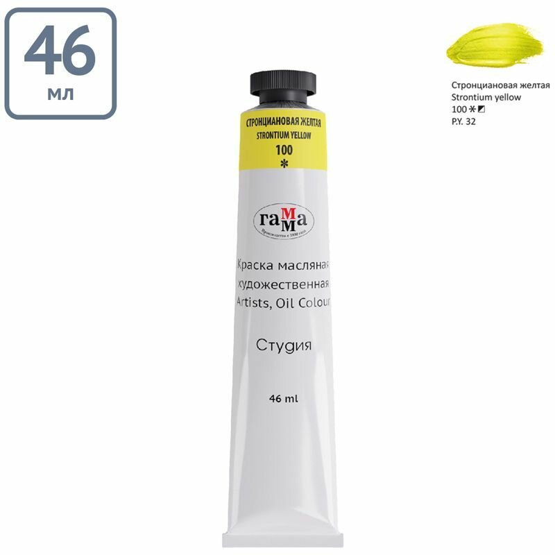 Краска масляная художественная Гамма "Студия", 46мл, туба, стронциановая желтая 200 ₽