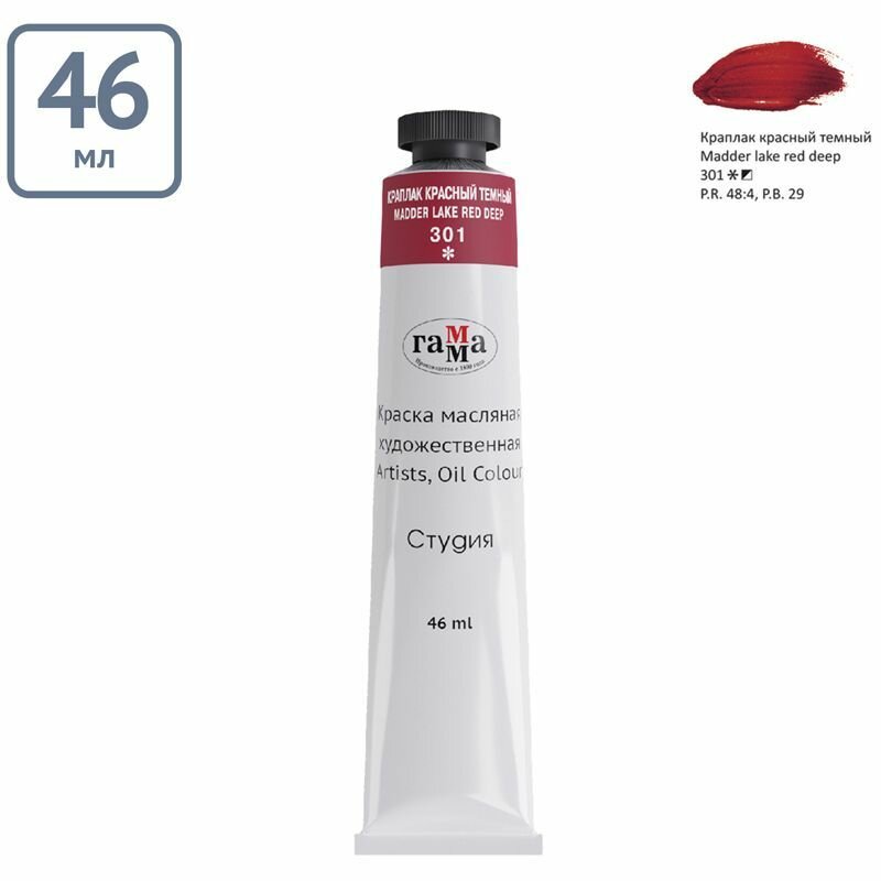 Отзывы на 6 шт - Краска масляная художественная Гамма "Студия", 46мл, туба, краплак красный темный