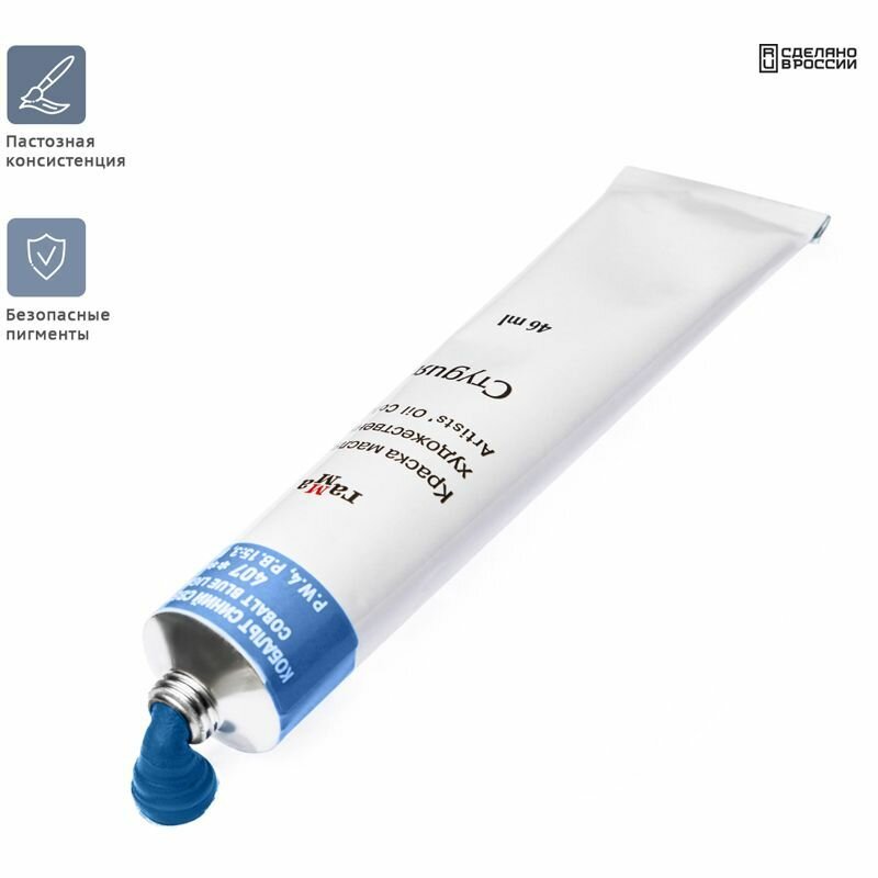 10 цен на 6 шт - Краска масляная художественная Гамма "Студия", 46мл, туба, кобальт синий светлый (имит.)
