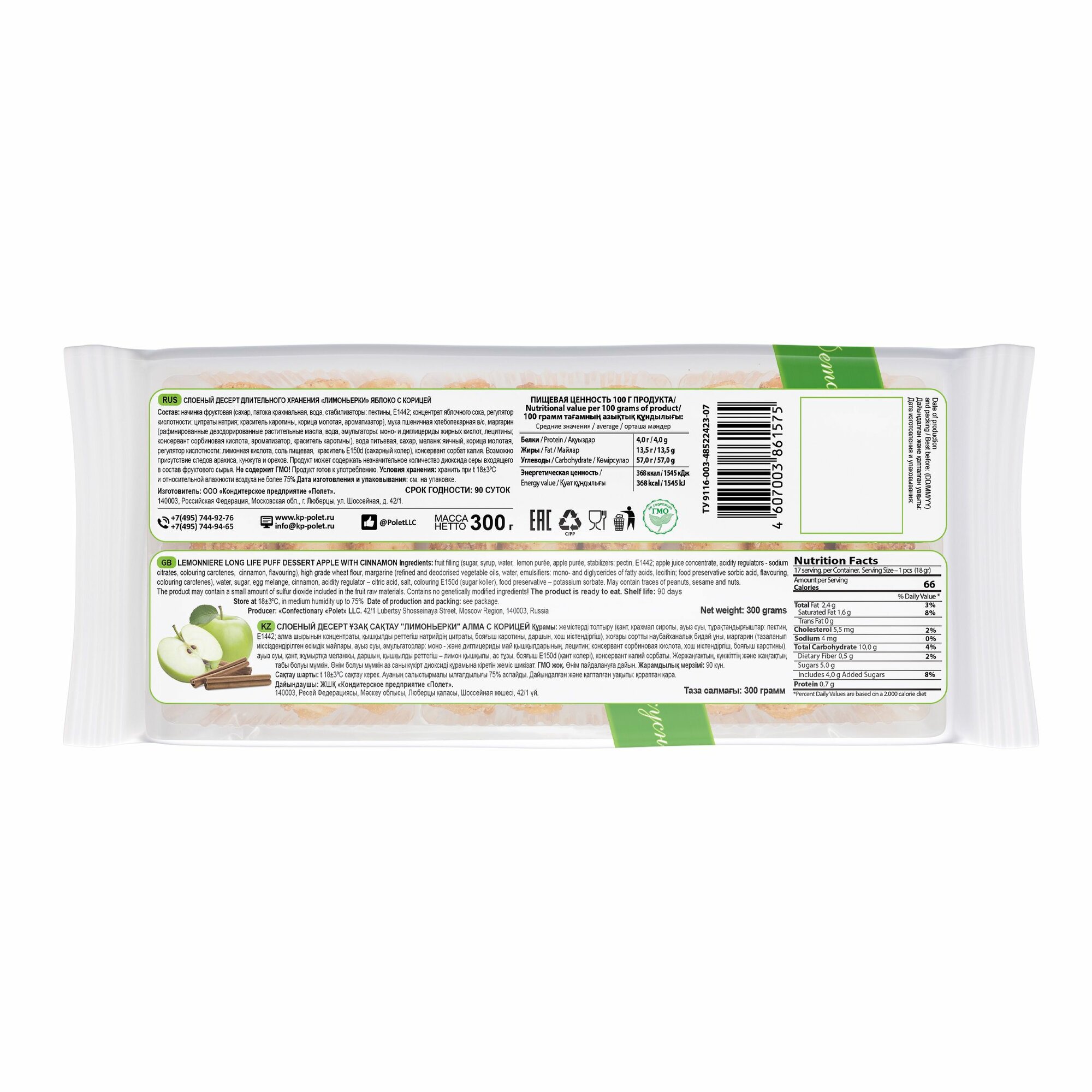 Слоёный десерт "Лимоньерки" с яблоком и корицей полет, 300г х 4шт информация: