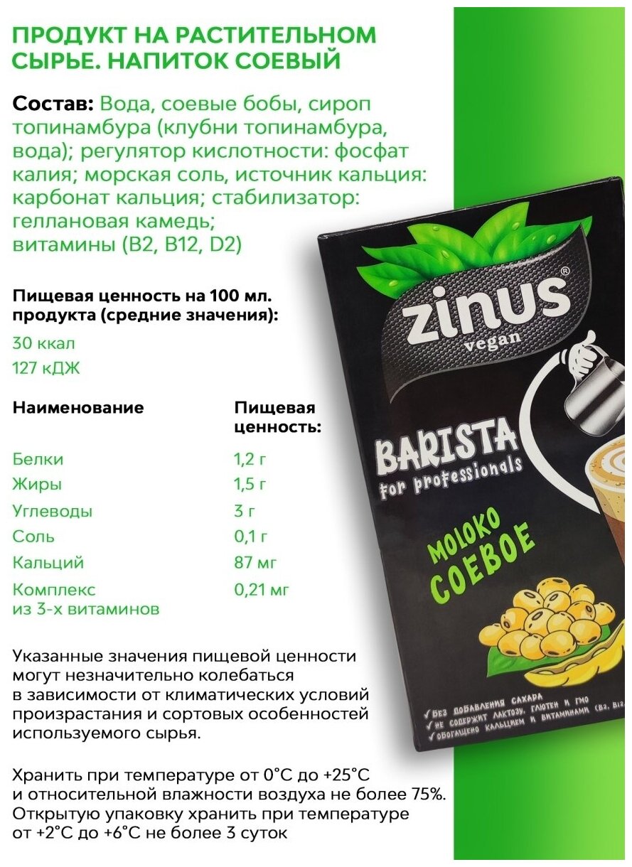 Соевое молоко ZINUS BARISTA 1 л х 12 шт информация: