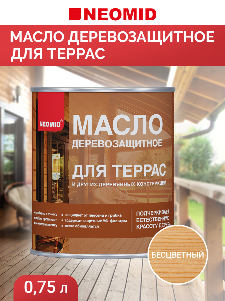 Масло для Террас Neomid 0.75л Бесцветное, Деревозащитное для Внутренних и Наружных Работ / Неомид. информация: