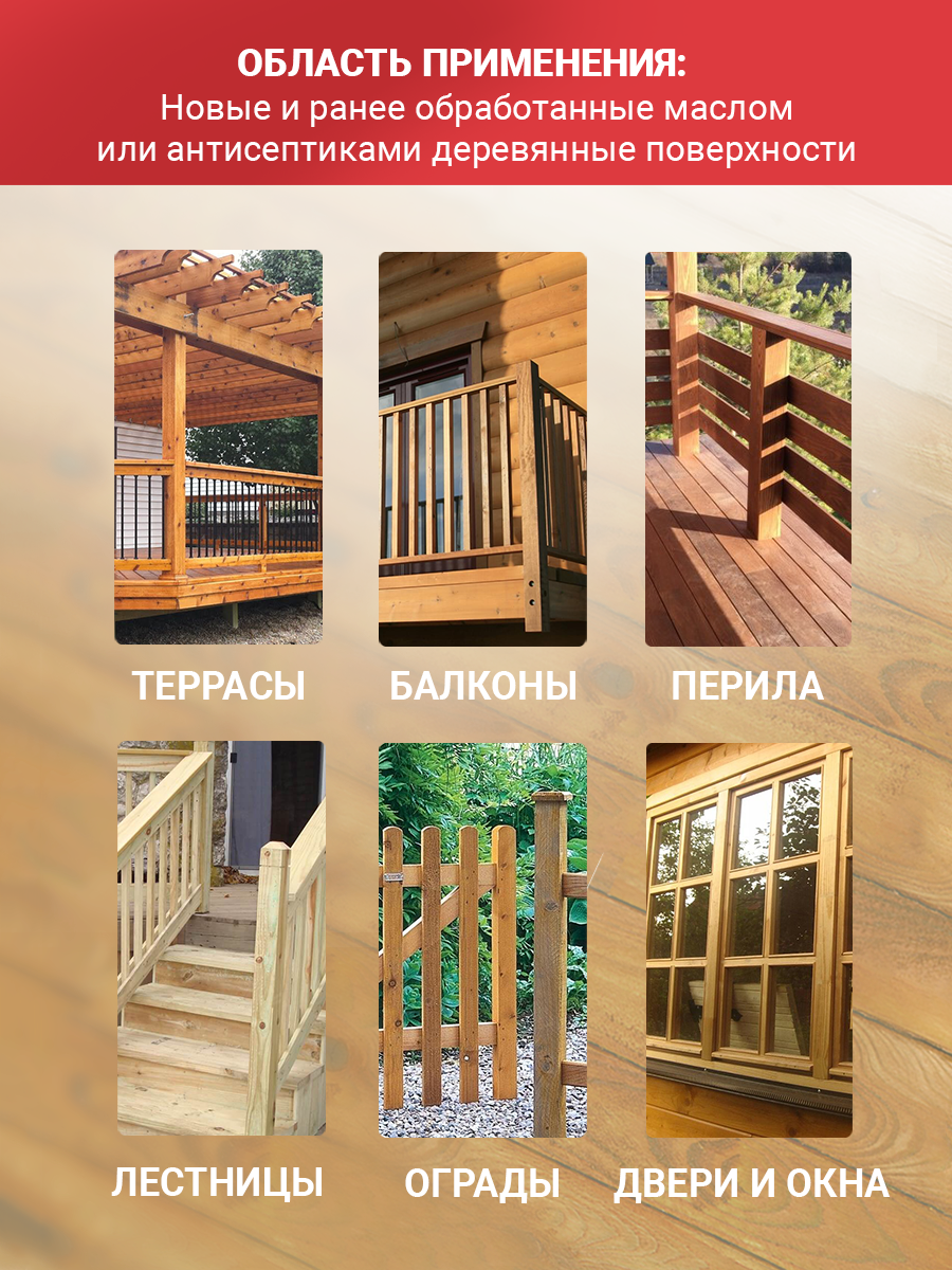 | Область применения | для дверей / для заборов / для окон / для садовой мебели / для фасадов |