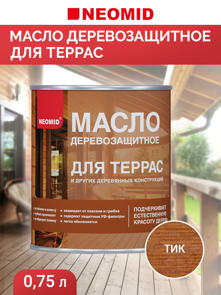 Масло для Террас Neomid 0.75л Тик, Деревозащитное для Внутренних и Наружных Работ / Неомид.* информация: