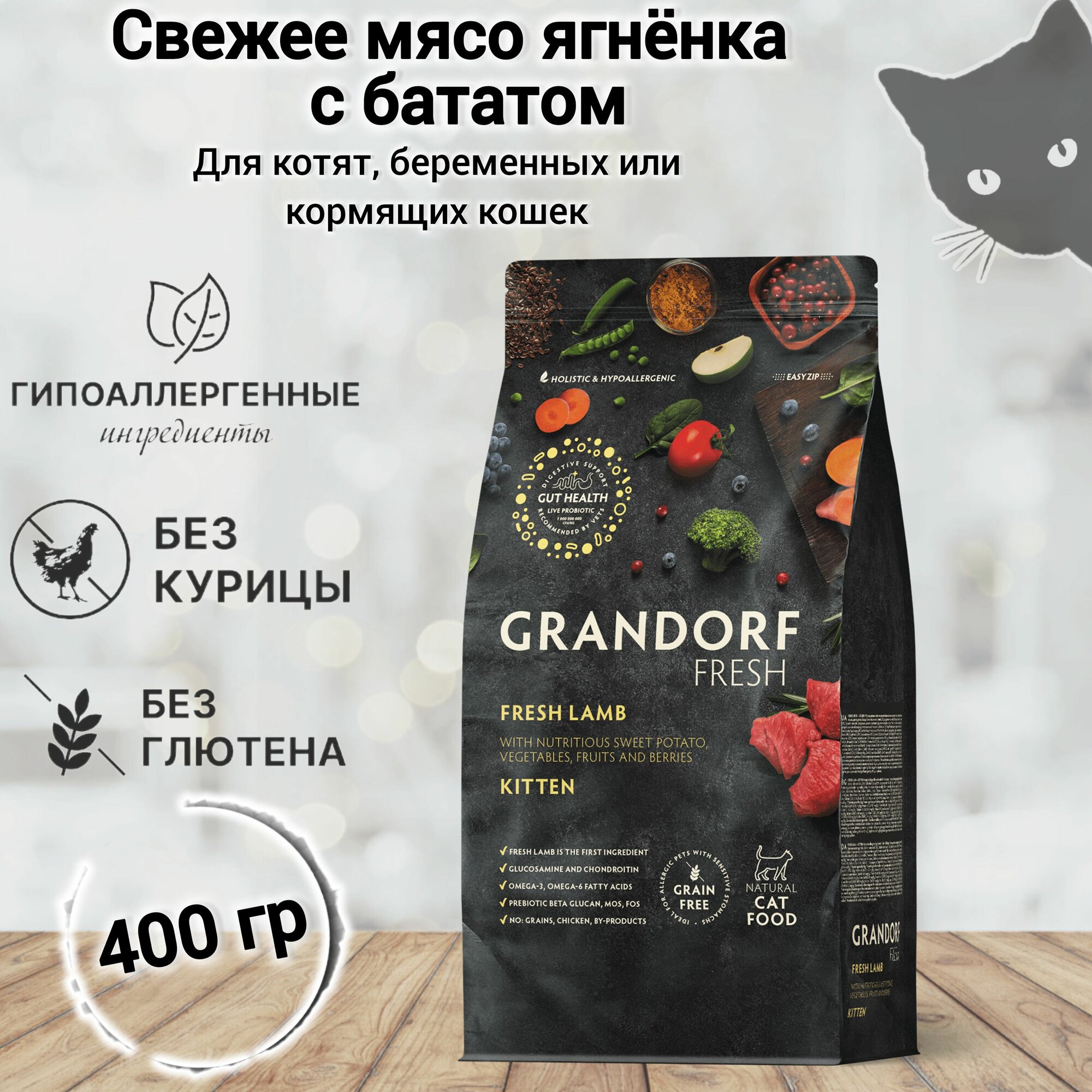 GRANDORF FRESH GF KITTEN LAMB & SWEET POTATO беззерновой для котят с ягненком и бататом, 0,4 кг информация:
