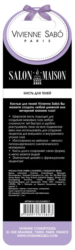 Кисть для теней VIVIENNE SABO - Salon-a-Maison - Eyeshadow Brush информация: