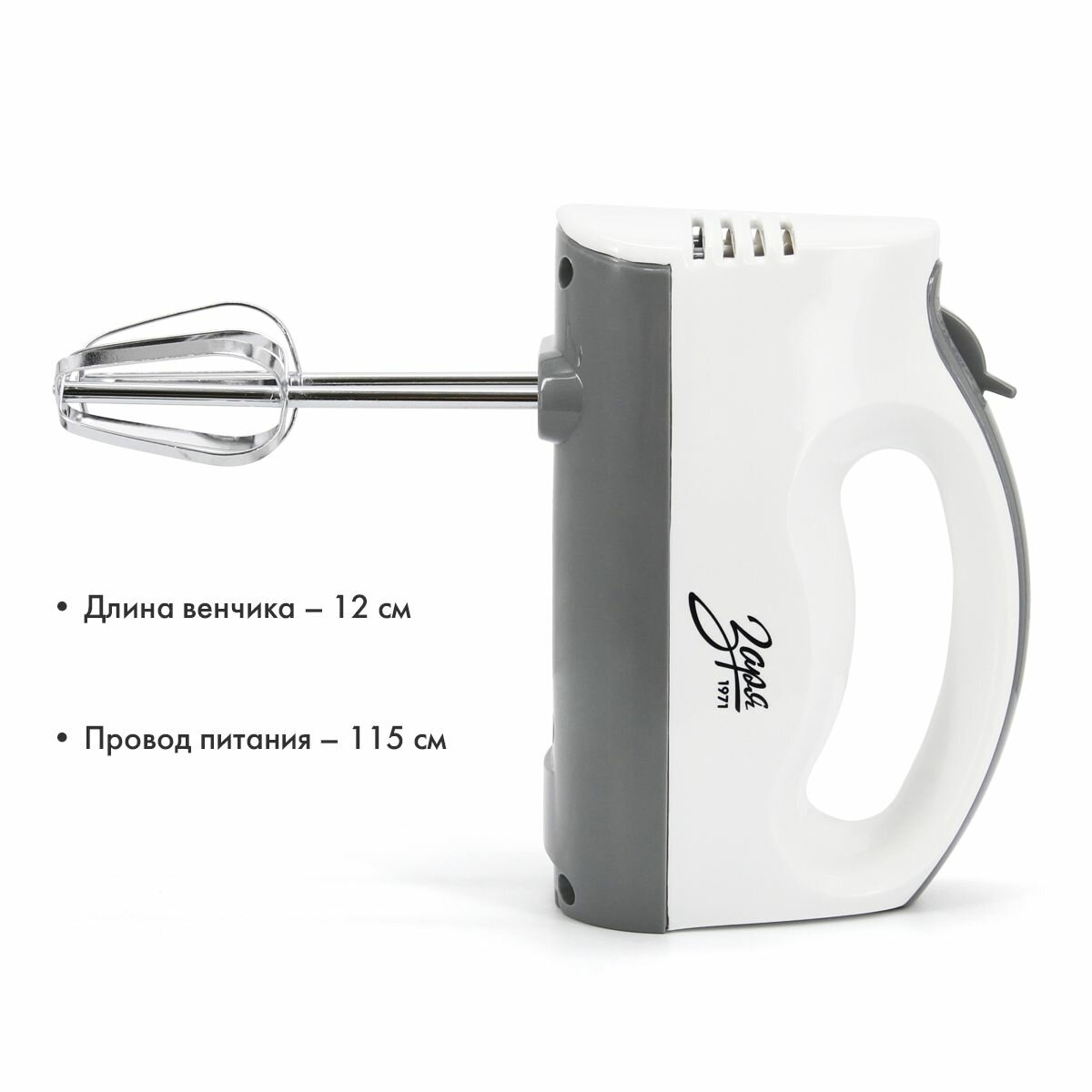 Ручной Миксер Заря 312-04, мощность 200 Вт, два комплекта насадок, семь скоростей информация: