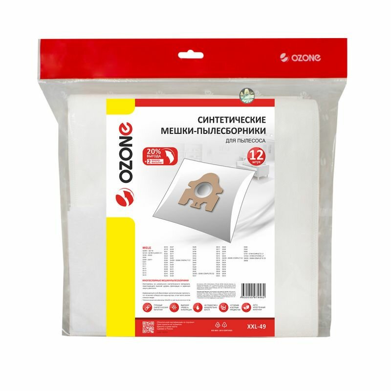 Ozone Мешки-пылесборники синтетические для пылесоса, 12 шт плюс 2 микрофильтра XXL-49 информация: