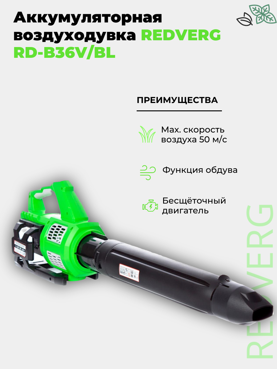 Аккумуляторная воздуходувка REDVERG RD-BV36V (без акк, без з/у) информация: