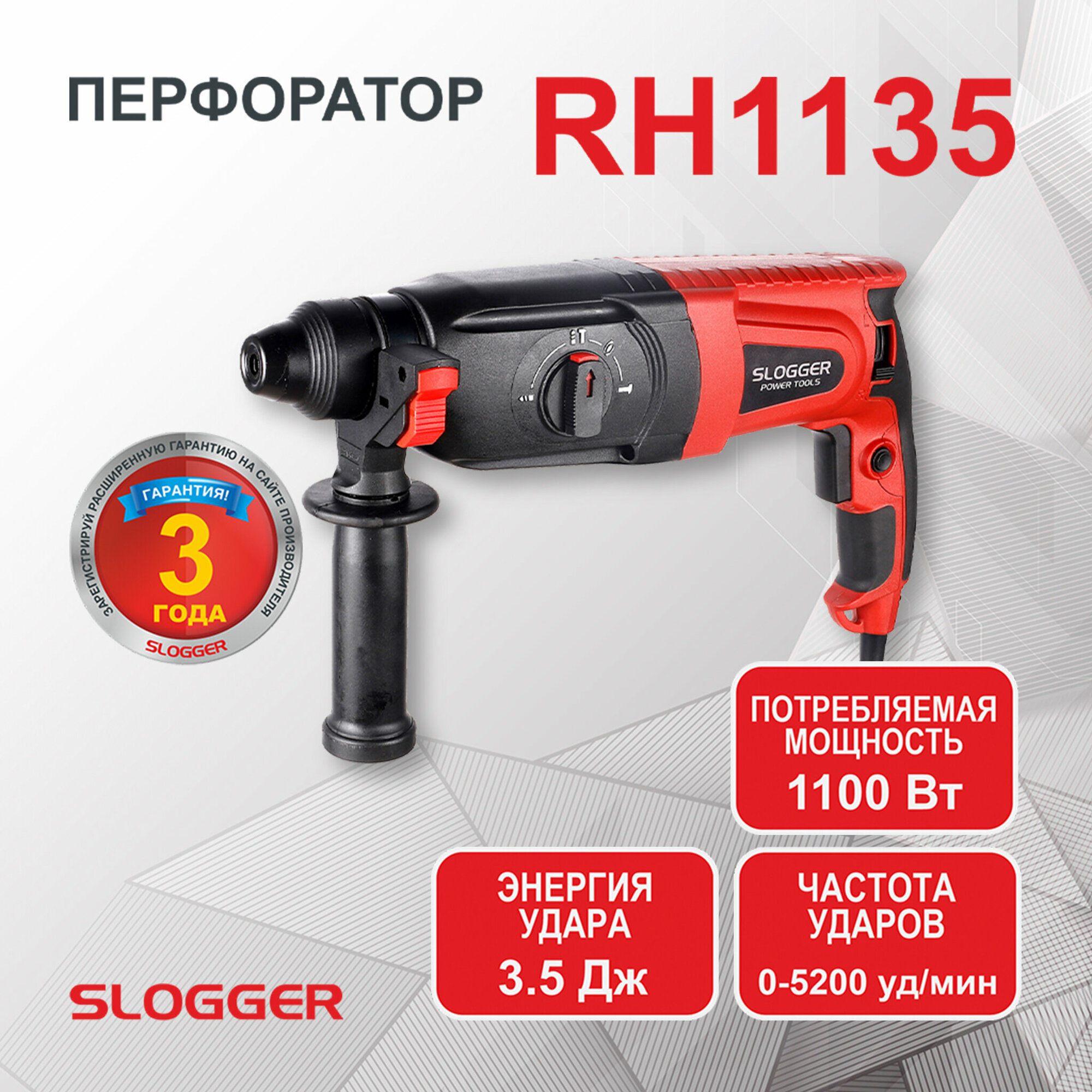 Отзывы на Перфоратор SDS-Plus Slogger RH1135, 1100Вт, 3.5Дж, кейс, буры в комплекте