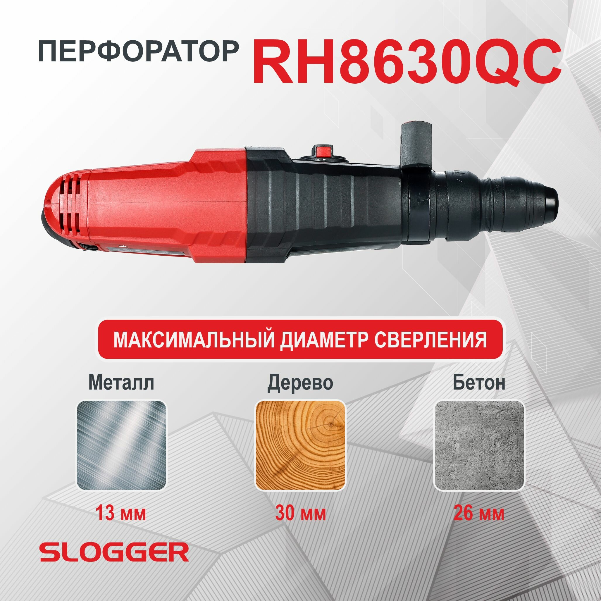 10 цен на Перфоратор SDS-Plus Slogger RH8630QC, 860Вт, 3Дж, кейс, буры в комплекте