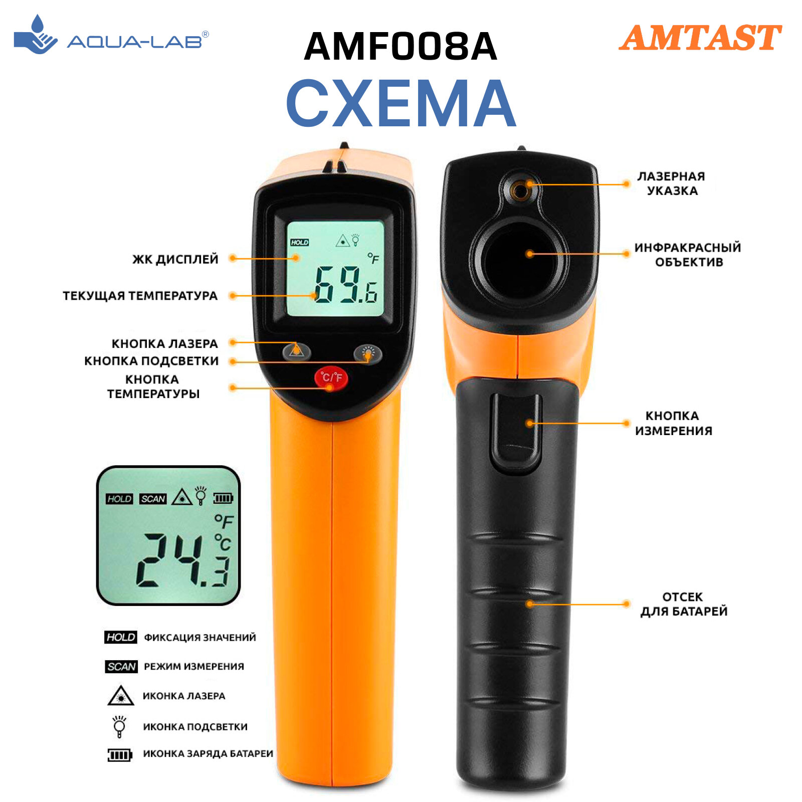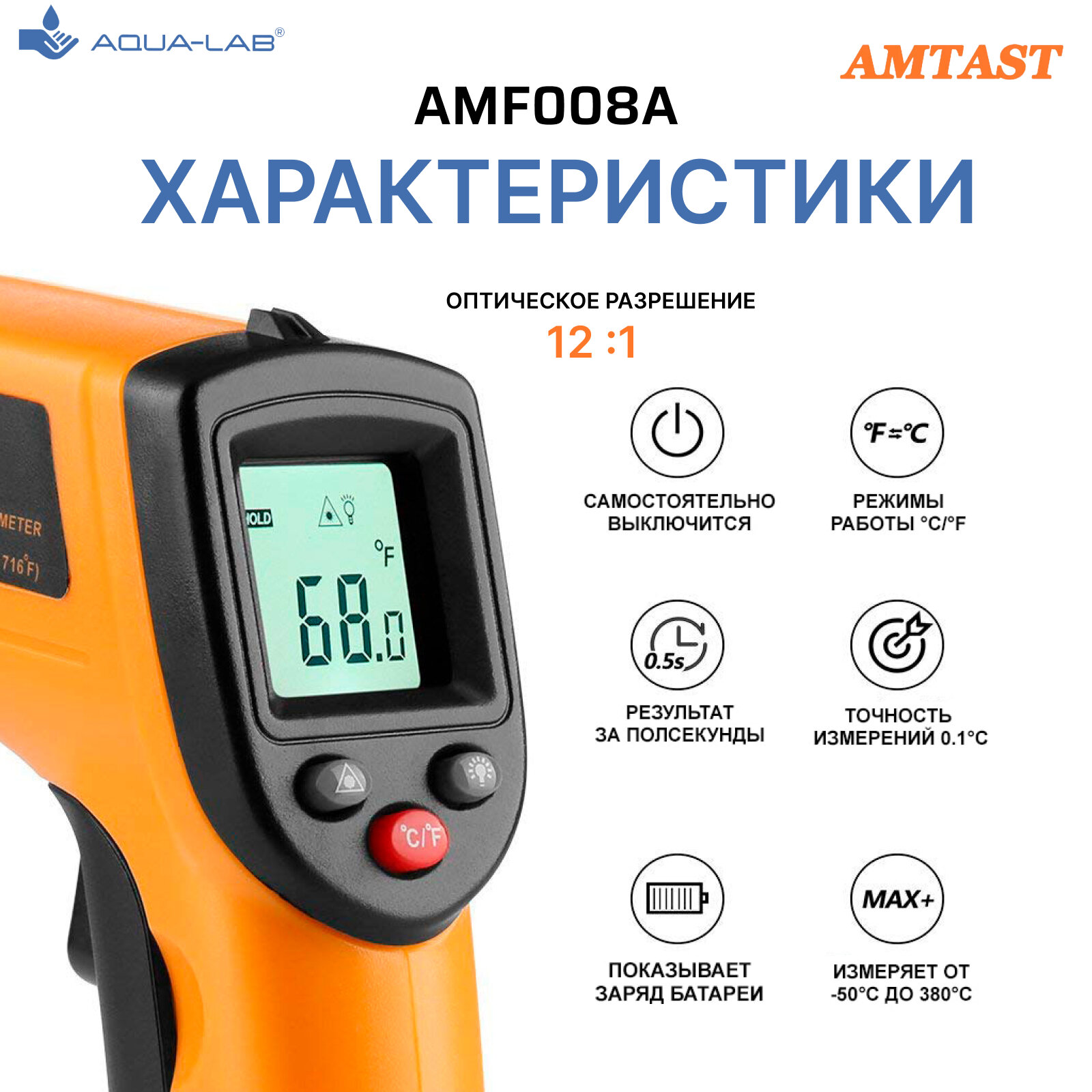 Пирометр бесконтактный AMTAST AMF008A ИК термометр (12:1 -50 ~ 380°C) для измерения температуры различных сред информация: