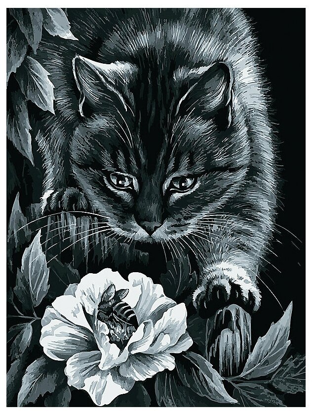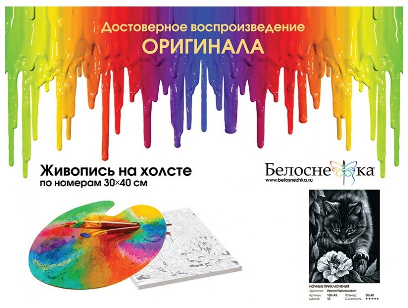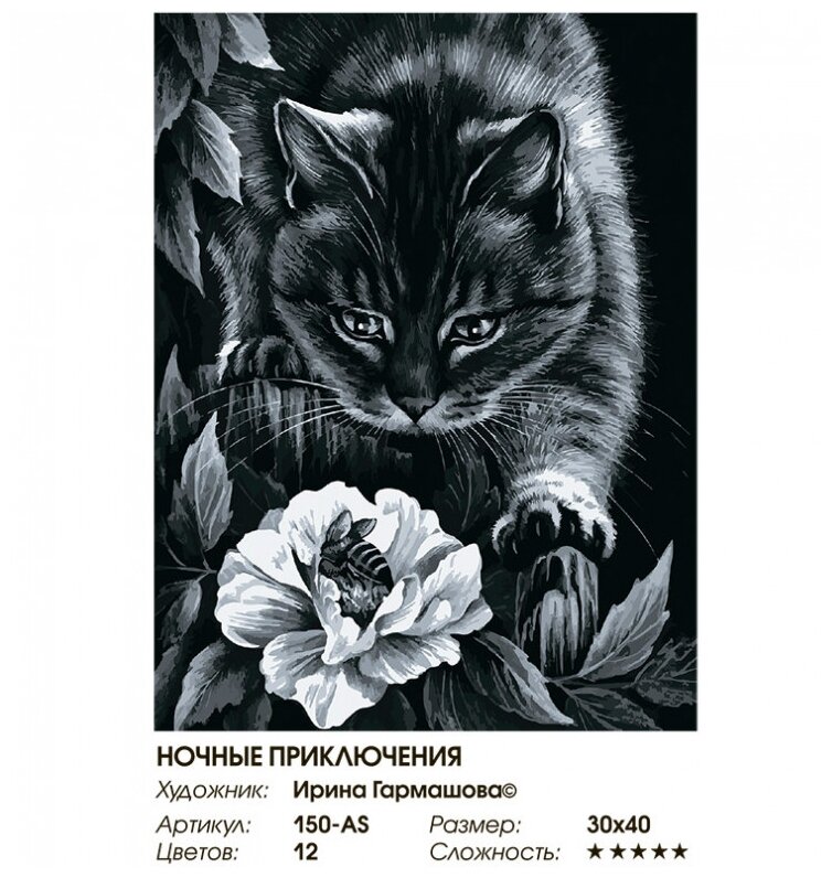 Картина по номерам Белоснежка "Ночные приключения" / Раскраска / Холст на подрамнике 30х40 см. / Животные / Кошка