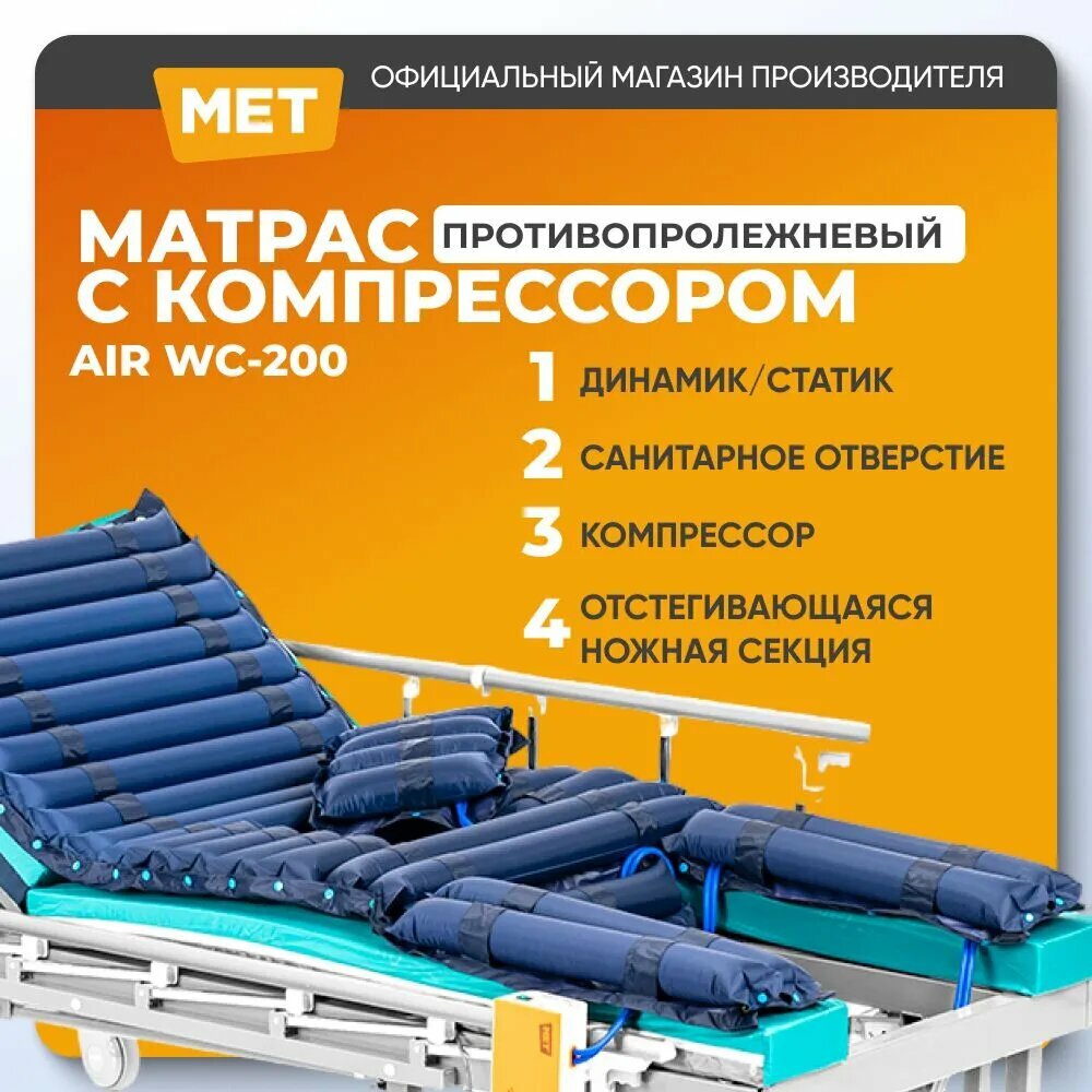 Противопролежневый матрас MET BASIC AIR WC-200 с компрессором трубчатый с отверстием для туалета и секций для ног информация: