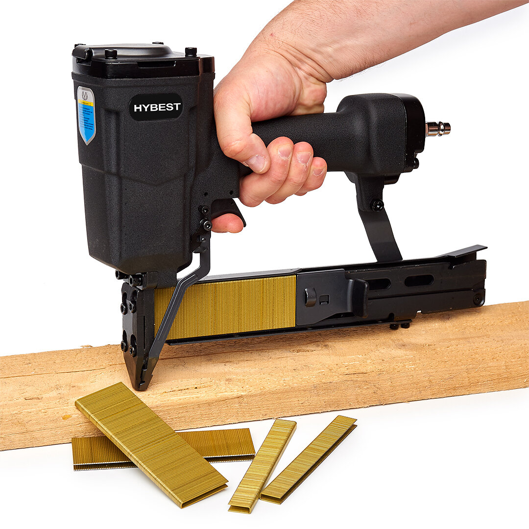 10 цен на Пневматический скобозабивной пистолет Hybest 440K по дереву (Пневмостеплер) / Монтажный финишный нейлер