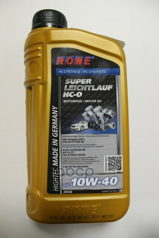 ROWE Масло Моторное 10W40 Hc-O 1L Hightec Super Leichtlauf 1 197 ₽