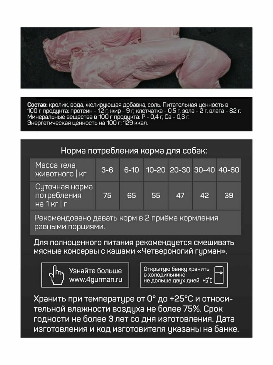 Корм влажный Четвероногий гурман Голд для собак Кролик в желе консервы 400 г информация: