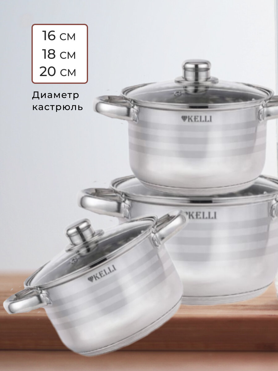 10 цен на Набор кастрюль из нержавеющей стали с крышками Kelli 4294 для индукционных плит 6шт без антипригарного покрытия