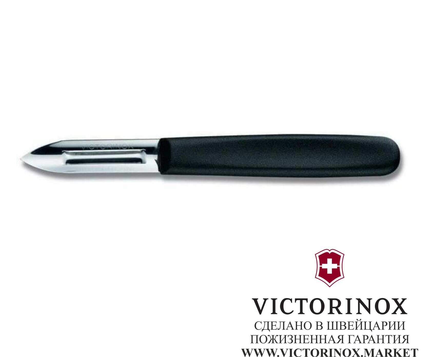 Нож для чистки картофеля VICTORINOX, двустороннее лезвие, нейлоновая рукоять, черный 5.0203