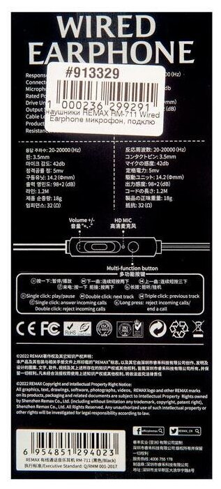 Наушники проводные с микрофоном Remax RM-712 информация: