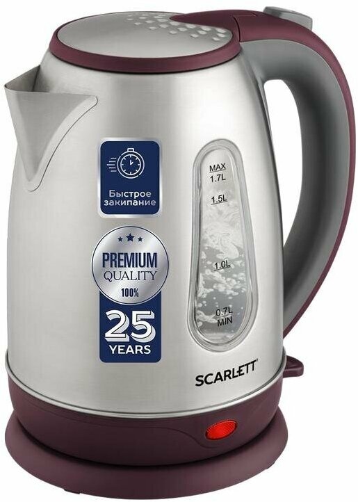 Отзывы на Чайник электрический 1,7л SCARLETT SC-EK21S89 мощность 2200Вт Safe Work бордовый нержавеющая сталь