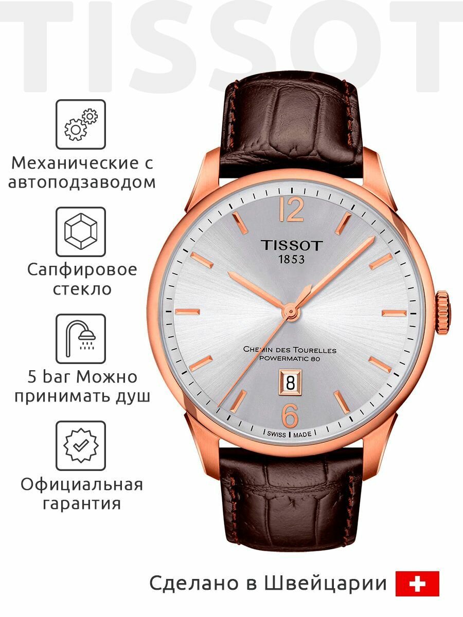 10 цен на Мужские часы Tissot Chemin des Tourelles Powermatic 80 T099.407.36.037.00 (T0994073603700)
