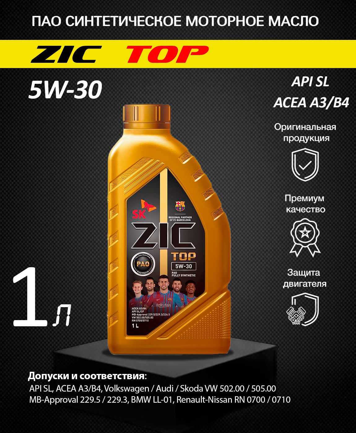 ZIC 132681 _ZIC TOP 5W30 (1L) масо мот.! синт.\API SL, ACEA A3/B4, MB 229.5/229.3,VW 502/505.00,RN 0700