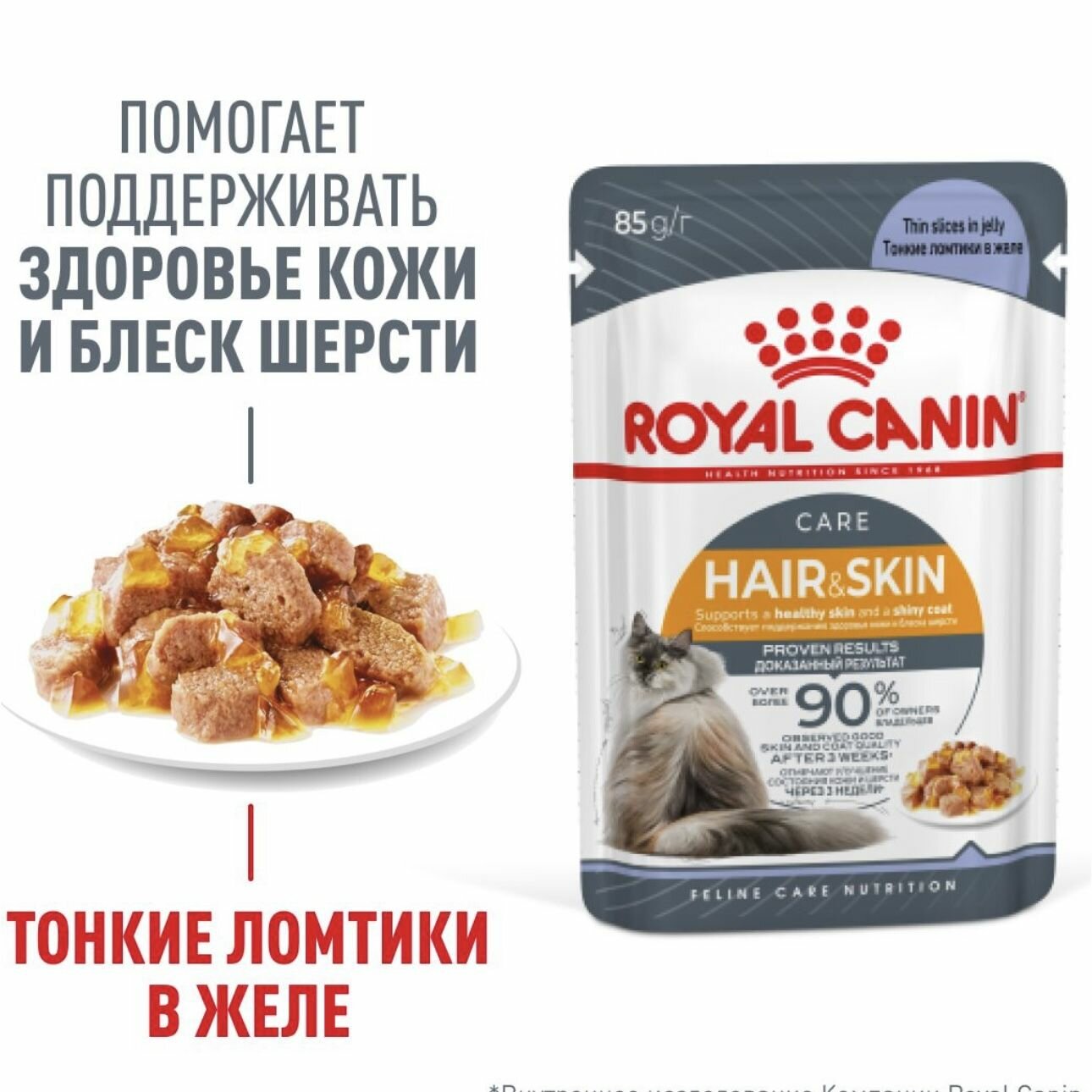Отзывы на Влажный корм для кошек Royal Canin Hair&Skin в Желе для здоровья кожи и шерсти 85 г х 10 шт
