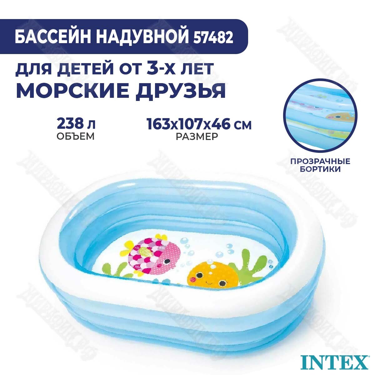 10 цен на Бассейн Intex Мои морские друзья, овальный, 163х107х46 см